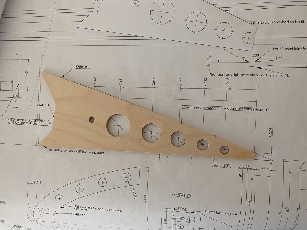 I also made the Aileron Stiffener. It took me a while to figure out the shape, only because I didn't realize that one side is not a straight line; it's following the wing profile.  ::)